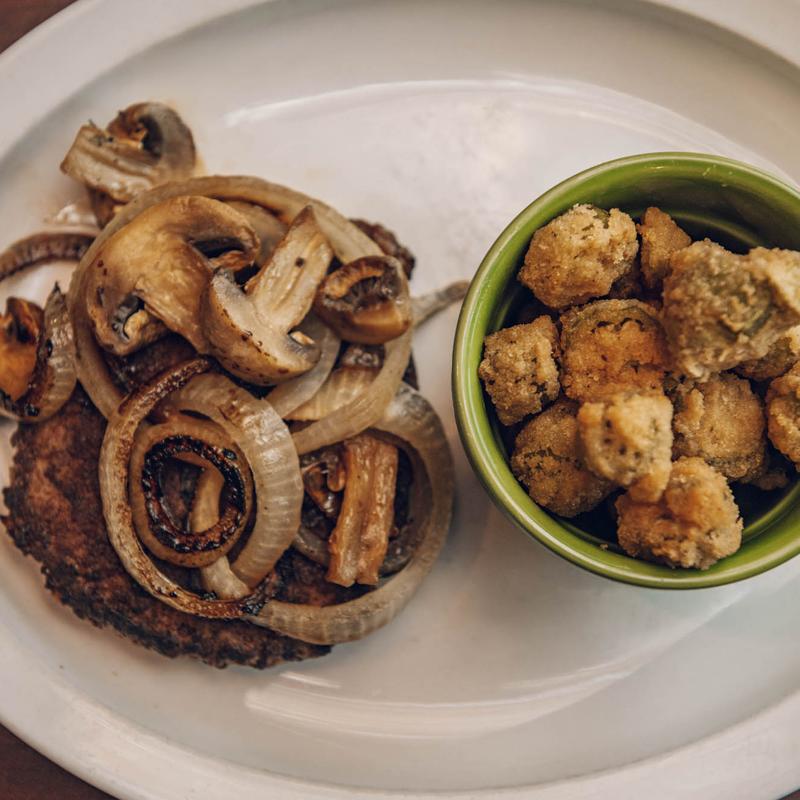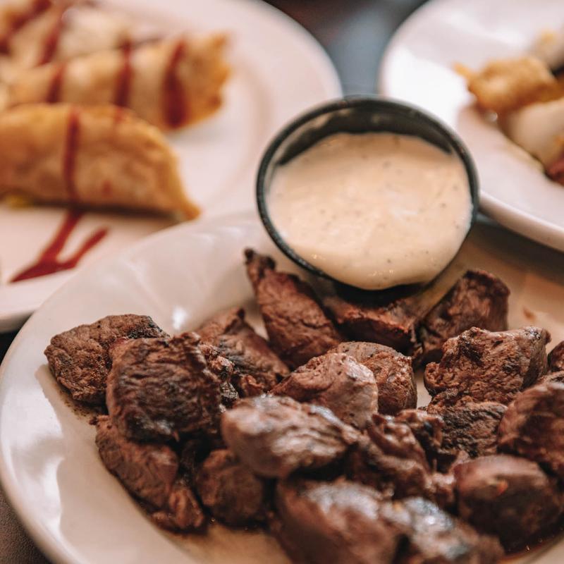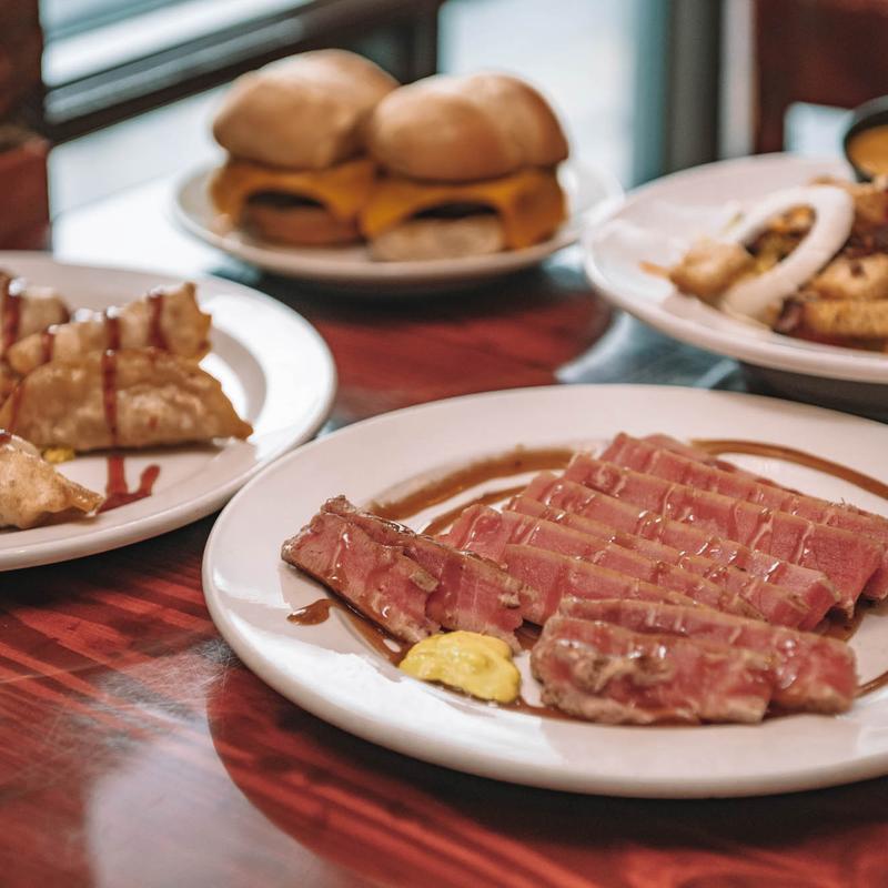 Enjoy one of our entrees served with your choice of hand cut fries or homemade sides. People often tell us that we have the best burgers, wings, and ahi tuna around! Top off your meal with our weekly dessert special. Dining options include outdoor dining in our Charleston style courtyard and we have 8 flat screen TVs to catch your favorite games.